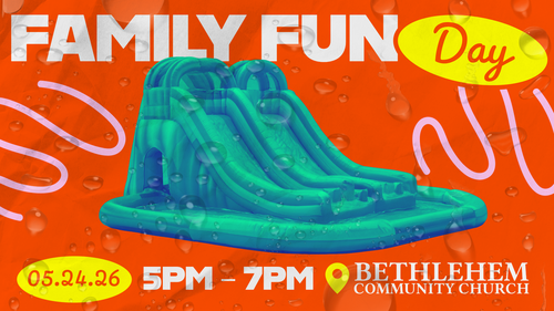 Waterslides, food, fun, and more..... Bring you family out for Family Fun Day, May 24, 2026 beginning at 5:00 pm to help us kick off VBS!